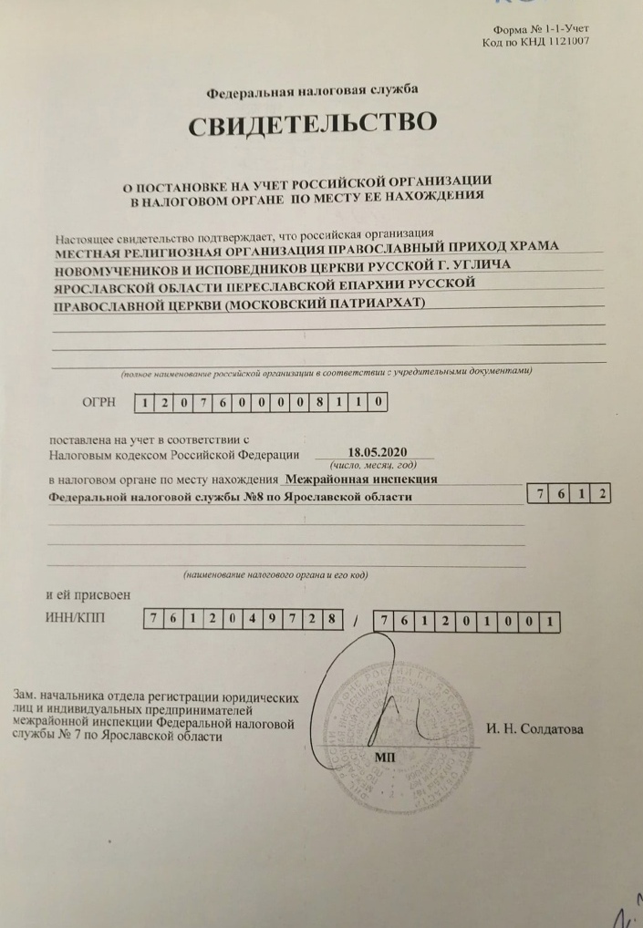 В 2020 году благословением епископа Переславского и Угличского ФЕОКТИСТА был создан Приход в честь святых Новомучеников и исповедников